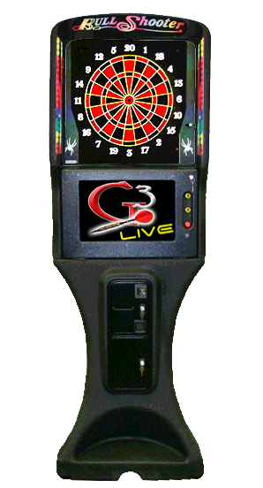 DartMachine(s) aankopen om competities op uw locatie mogelijk te maken en/of uit te breiden? Hier vind u informatie! Een geavanceerde dartmachine van Arachnid is de G3 (Galaxy 3) Deze machine heeft online functies voor spelers, waaronder bv wereld wijde statistieken en het heeft een draaibaar bord. De G3 biedt vele mogelijkheden. Spelen is mogelijk tegen darters over de hele wereld! Deze machine zal zeker de competitieve vonk aanwakkeren bij zowel Competitie- |